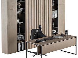 现代办公桌椅组合 书柜 装饰柜 电脑 办公用品 书本