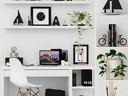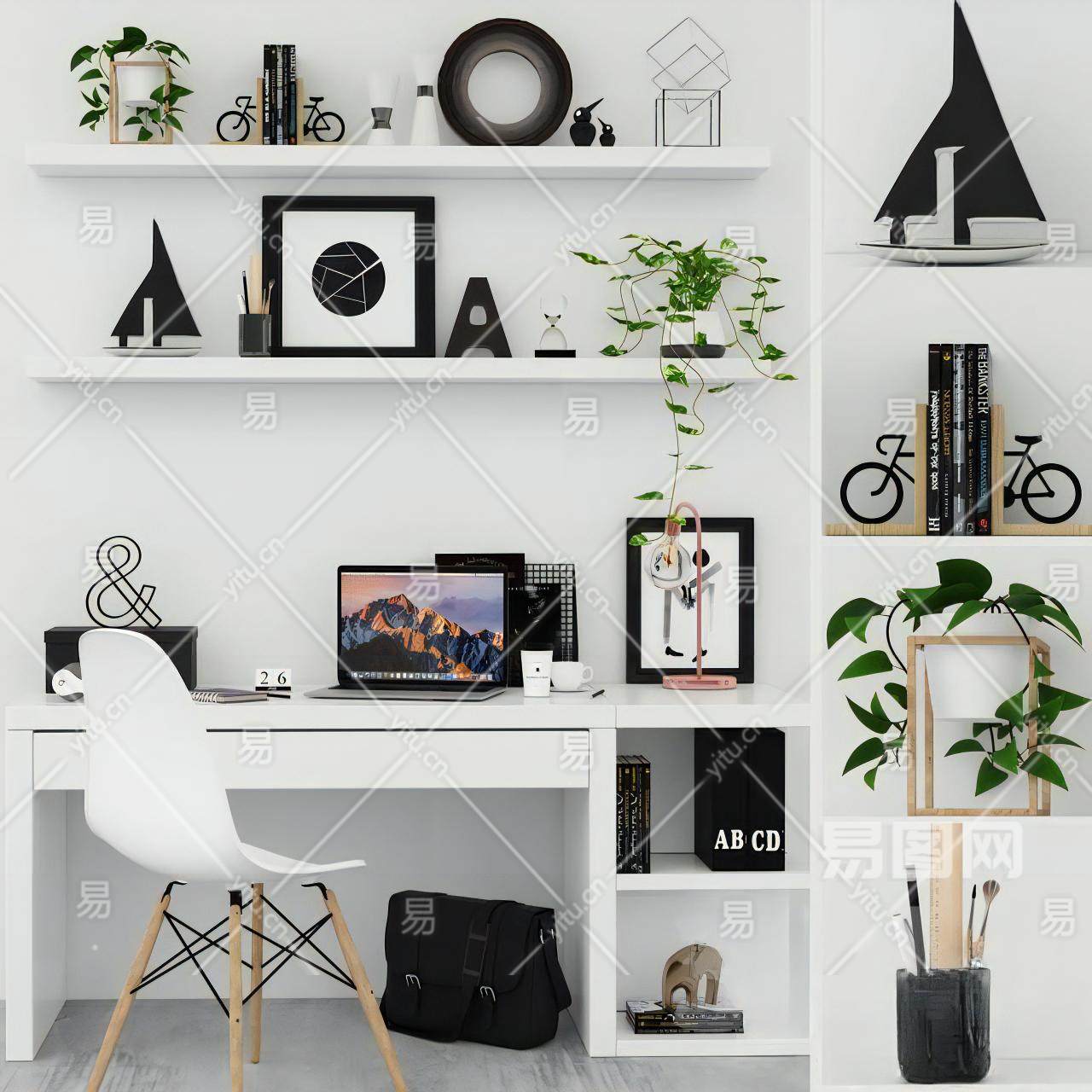 现代书桌椅组合 书桌椅 椅子 单椅 办公用品 书桌 陈设 摆件 电脑1