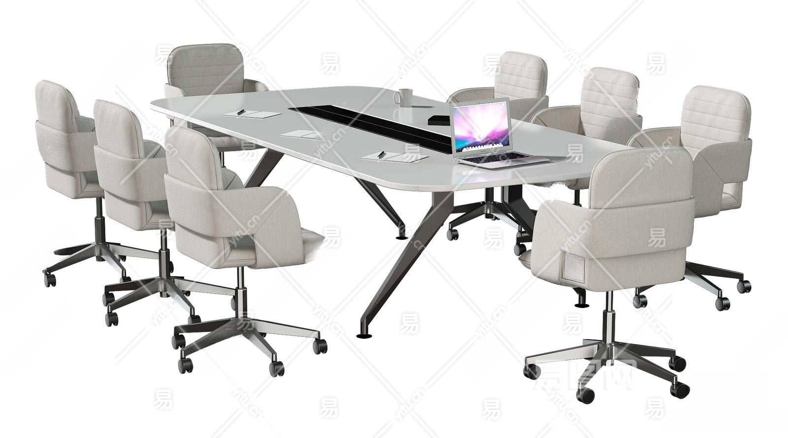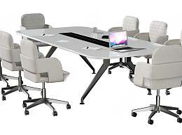 现代办公桌椅组合3D模型下载