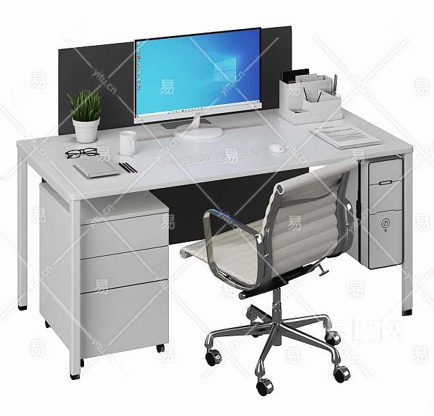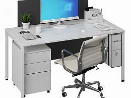 现代办公桌椅组合3D模型下载