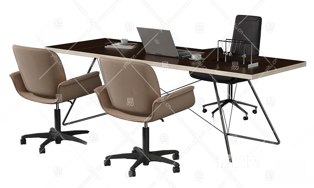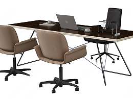 现代办公桌椅组合3D模型下载