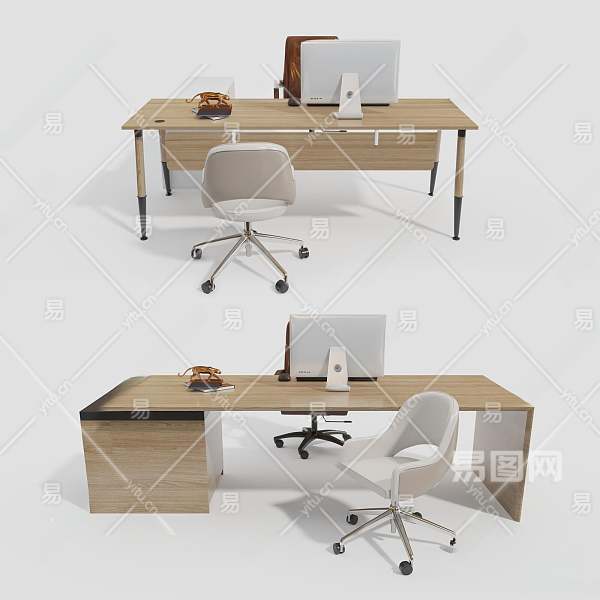 现代办公桌椅组合3D模型下载