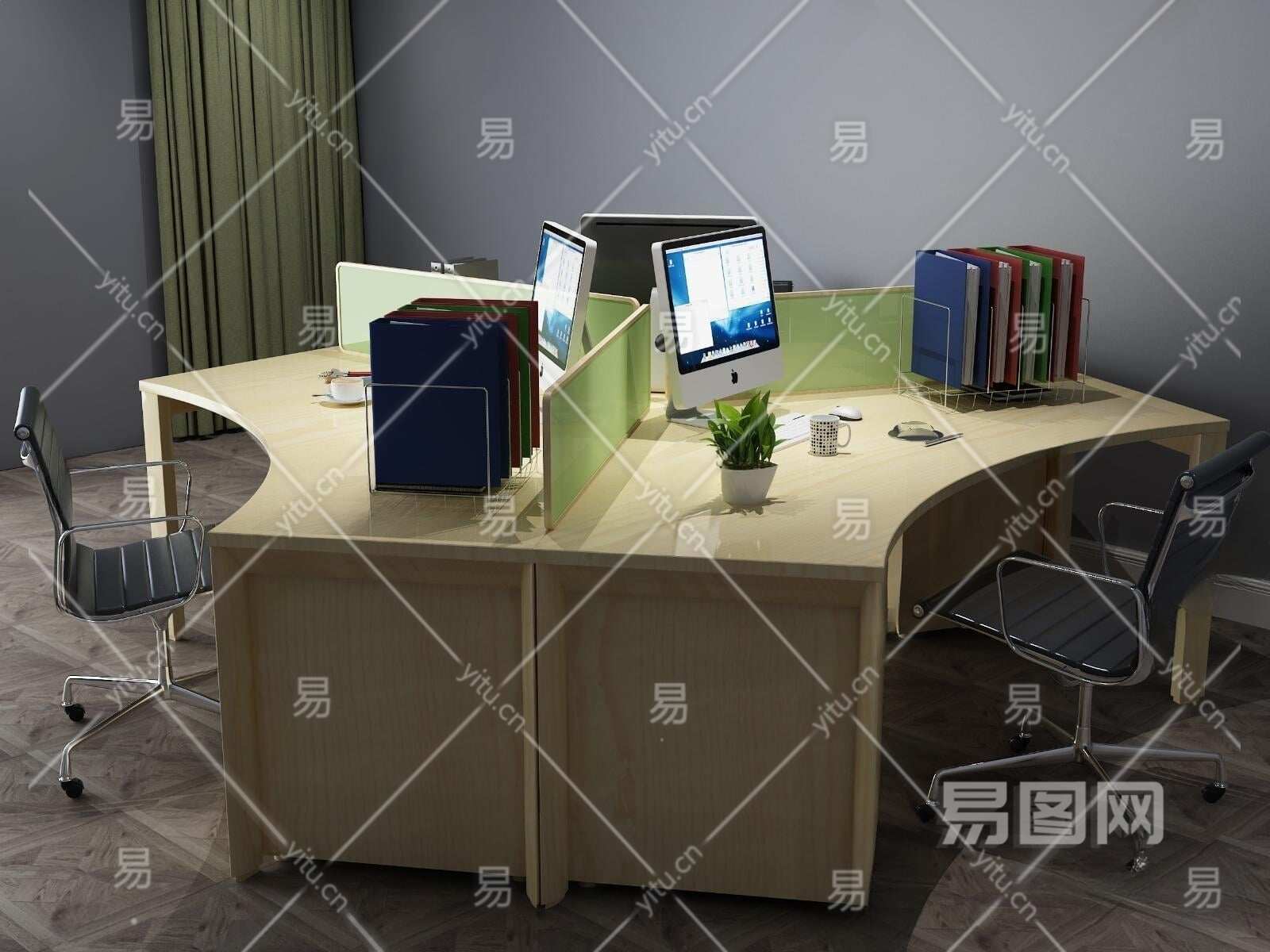 现代办公桌3D模型下载