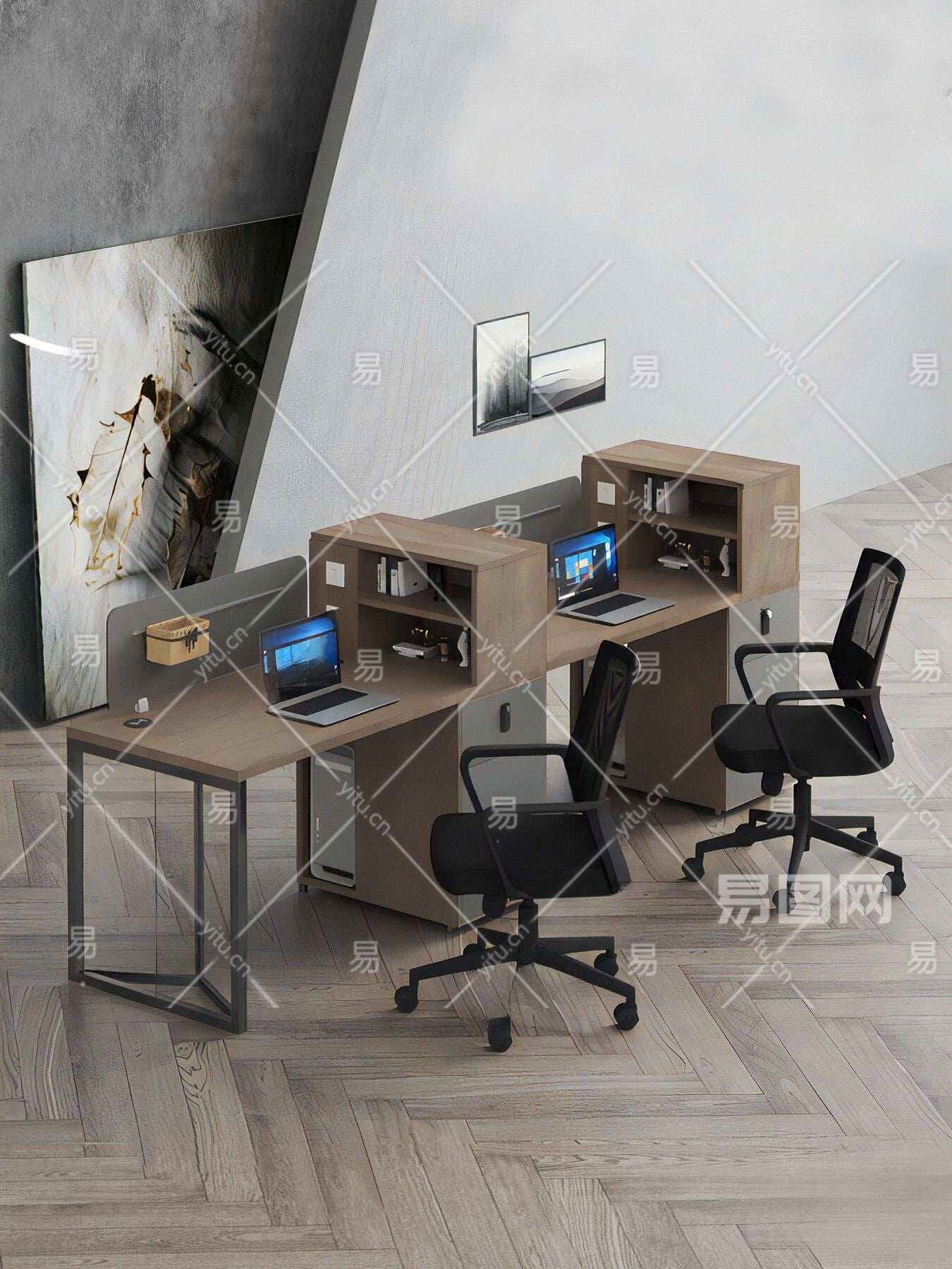 现代卡位办公桌椅3D模型下载