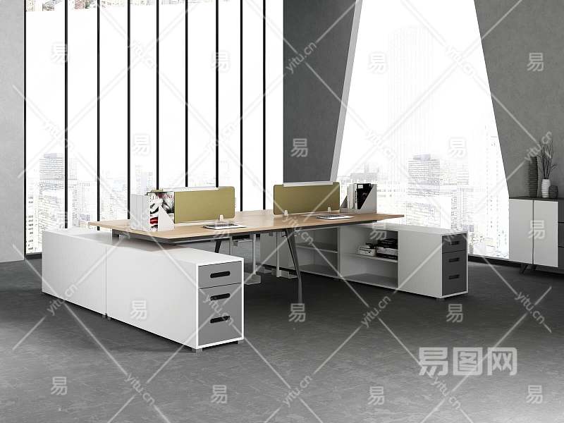 现代办公职员桌3D模型下载