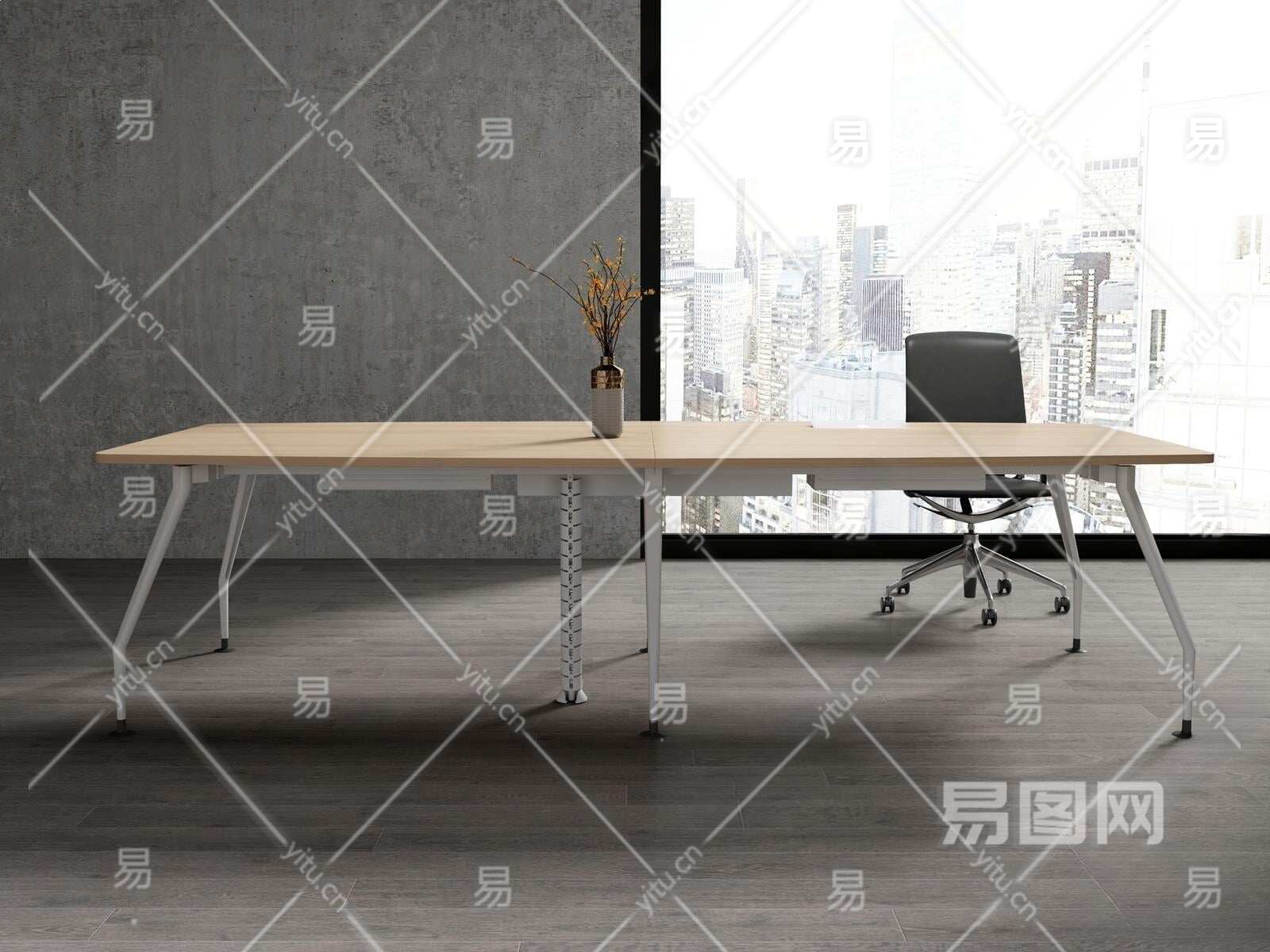 现代办公桌椅组合3D模型下载