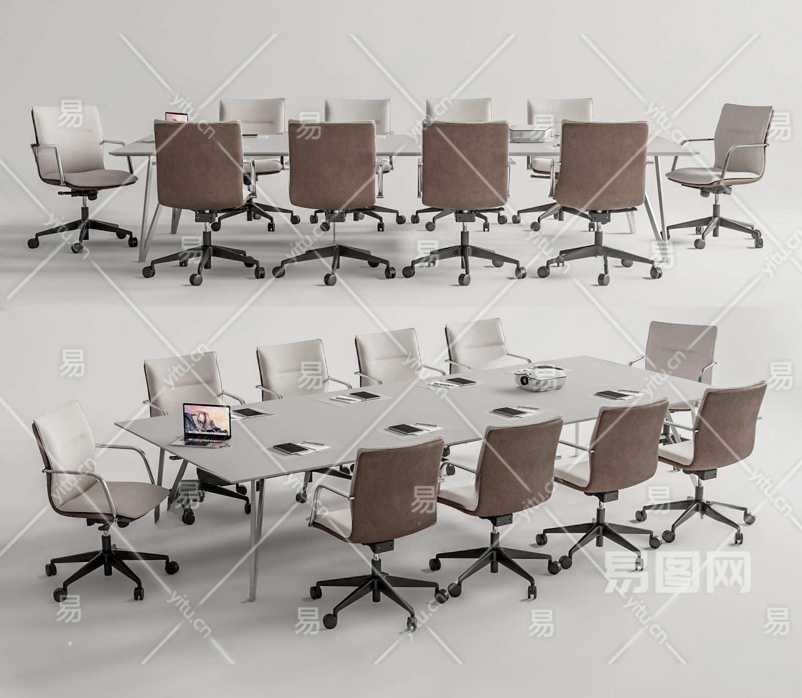 现代会议桌椅3D模型下载