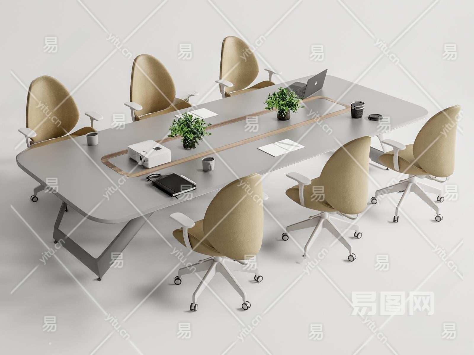 现代会议桌椅3D模型下载