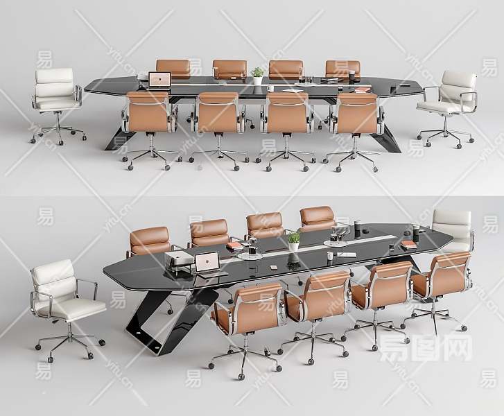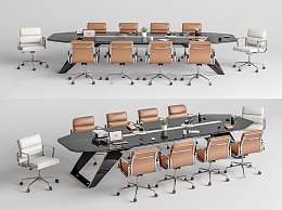 现代会议桌椅3D模型下载