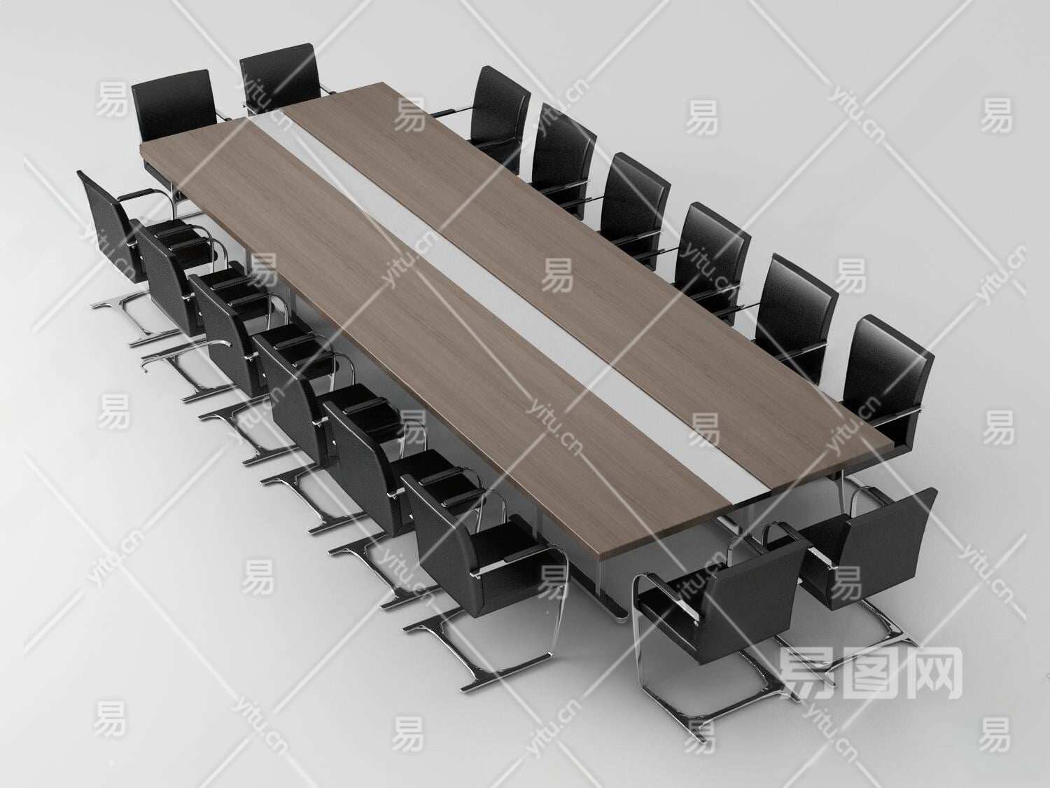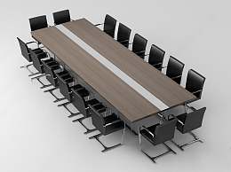 现代会议桌椅组合3D模型下载