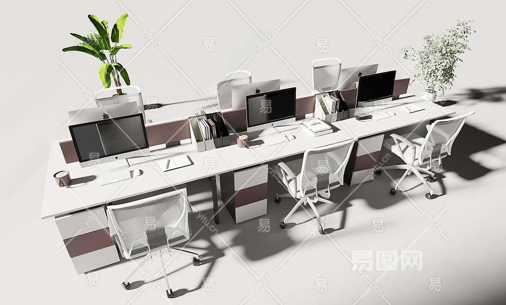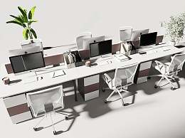 现代办公桌椅组合3D模型下载