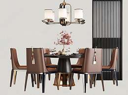 新中式餐桌椅组合3D模型下载
