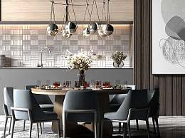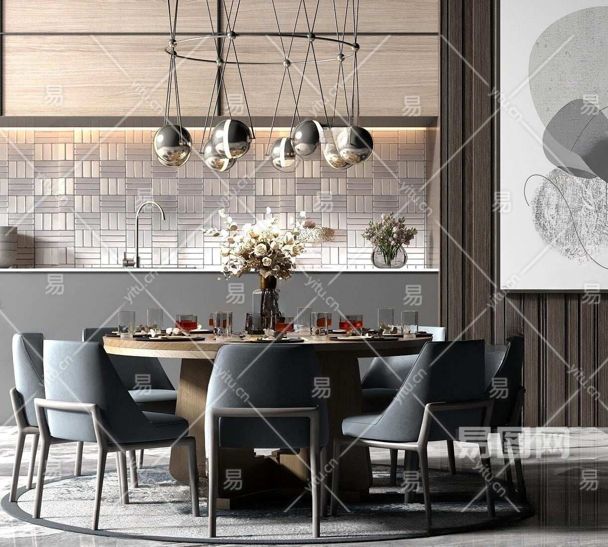现代圆形餐桌椅3D模型下载