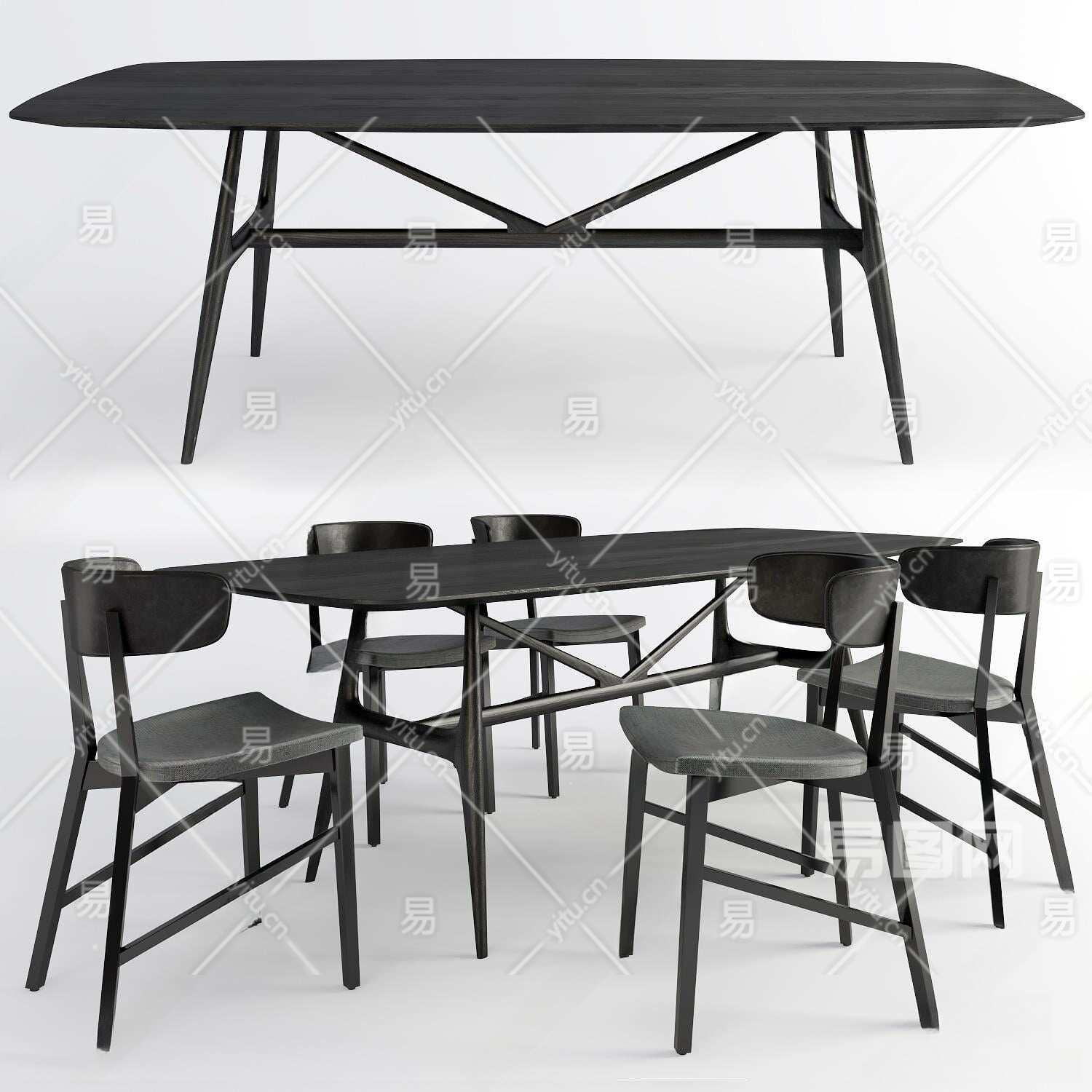现代餐桌椅组合3D模型下载