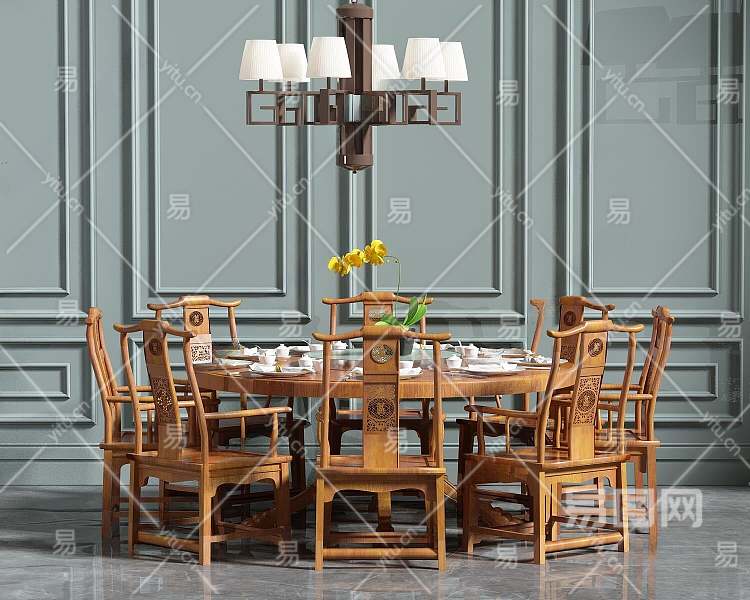 当前的位置:首页 > 3D模型 > 桌椅组合 > 餐桌椅组合 > 新中式餐桌3D模型下载