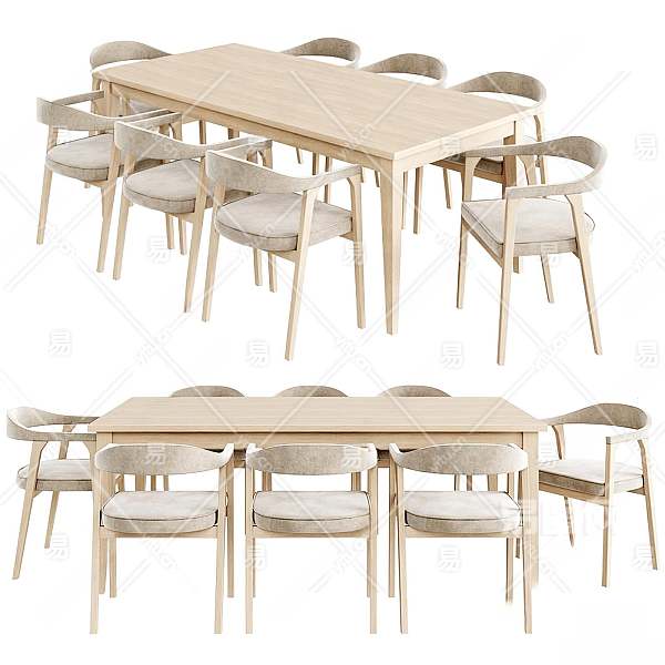 现代餐桌椅组合3D模型下载