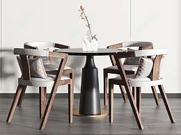 新中式餐桌椅组合3D模型下载