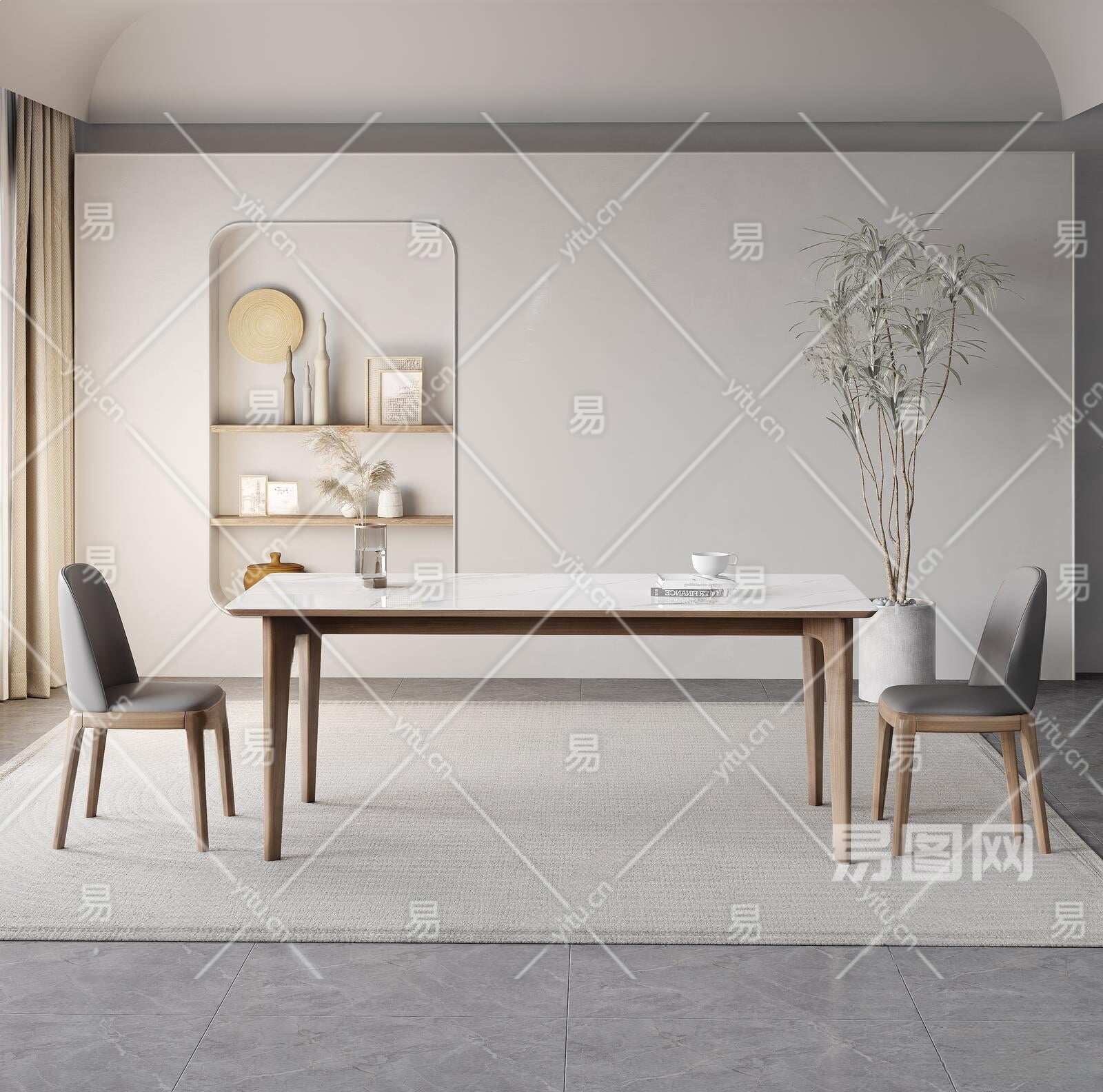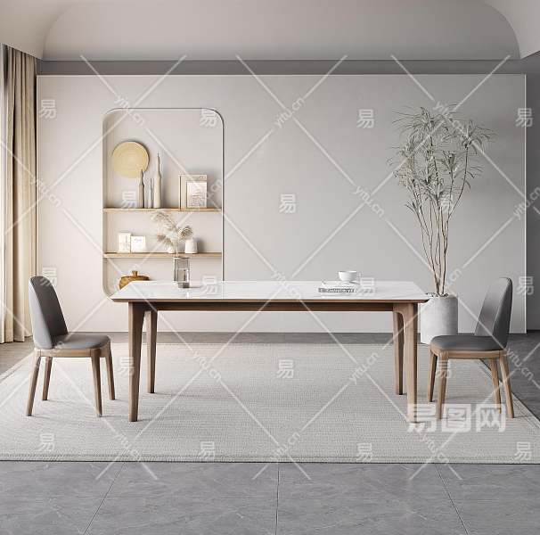 侘寂餐桌椅组合3D模型下载