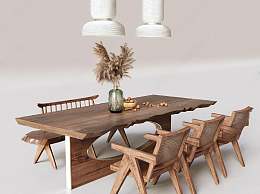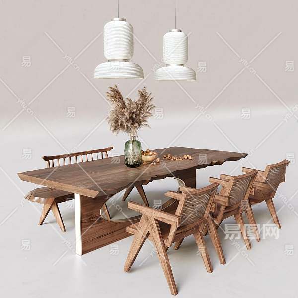侘寂餐桌椅组合3D模型下载