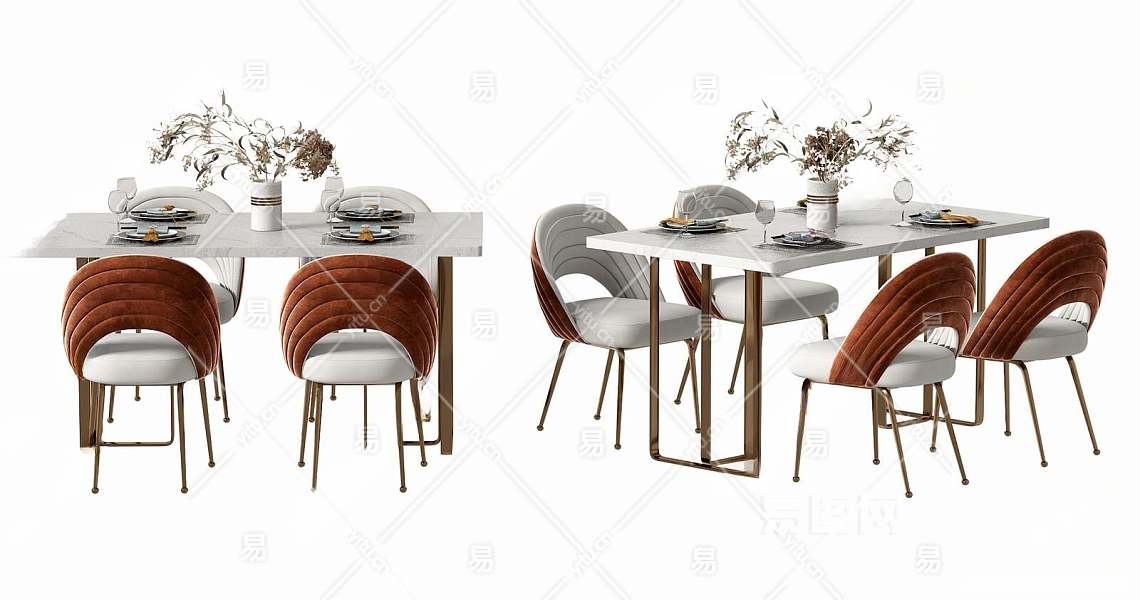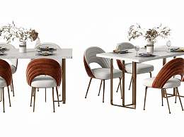 现代餐桌椅组合3D模型下载