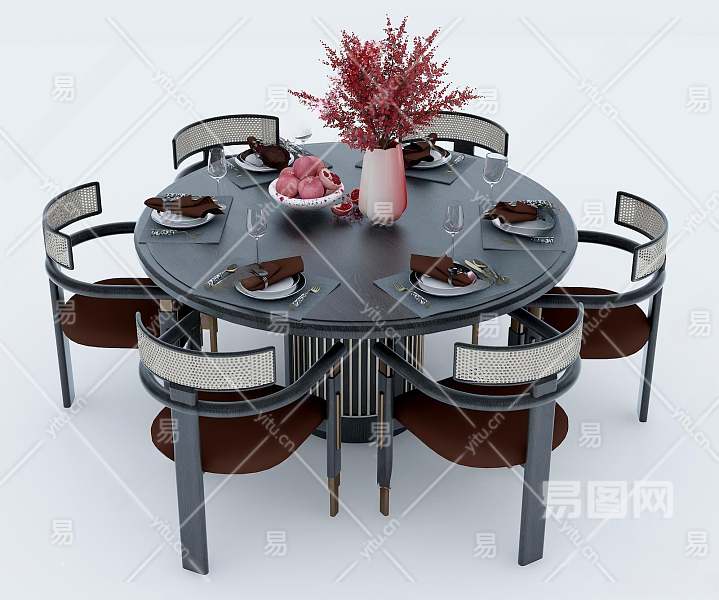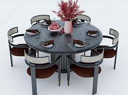 新中式餐桌椅组合3D模型下载