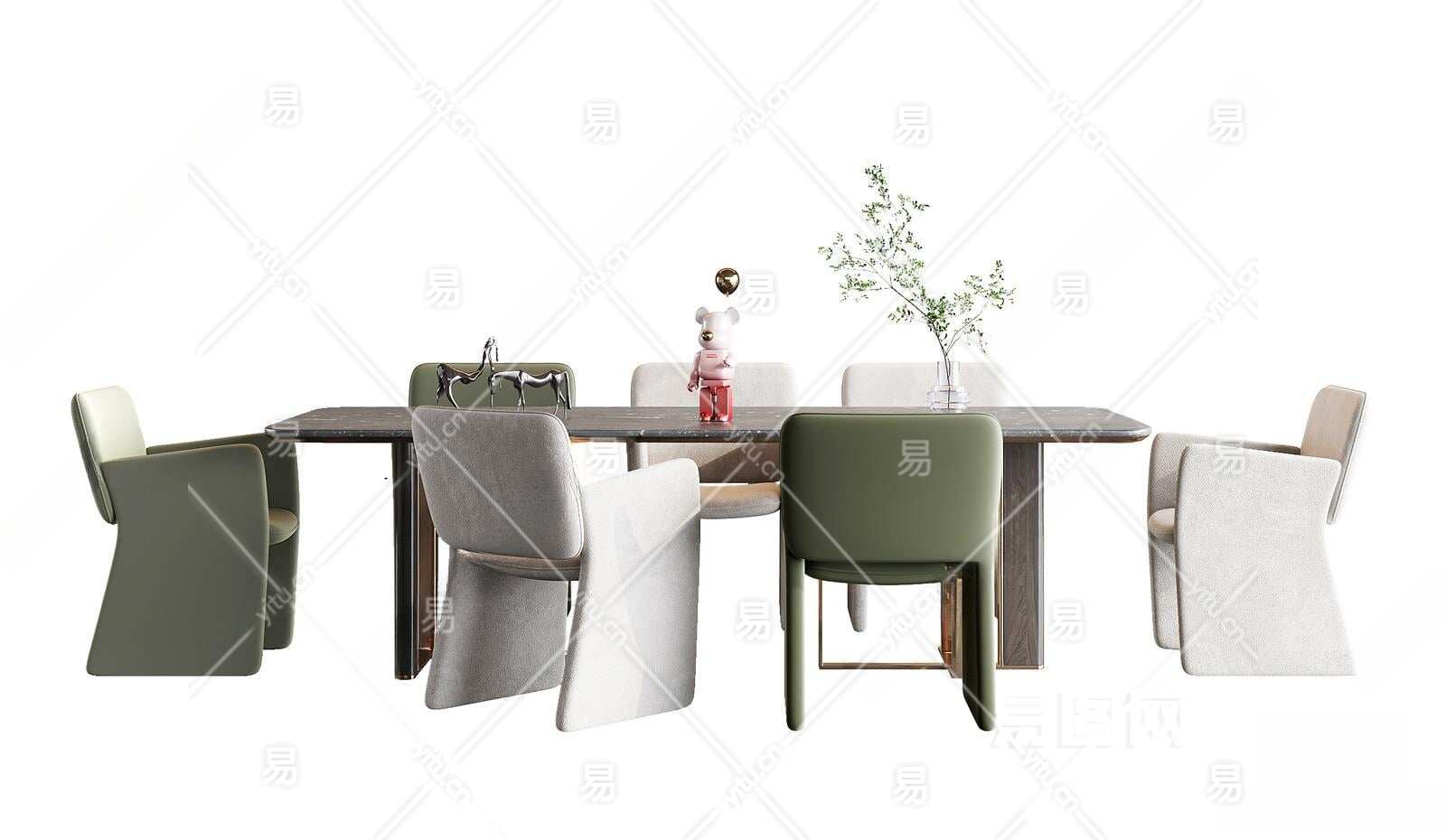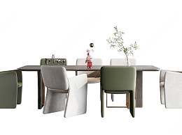 现代餐桌椅组合3D模型下载