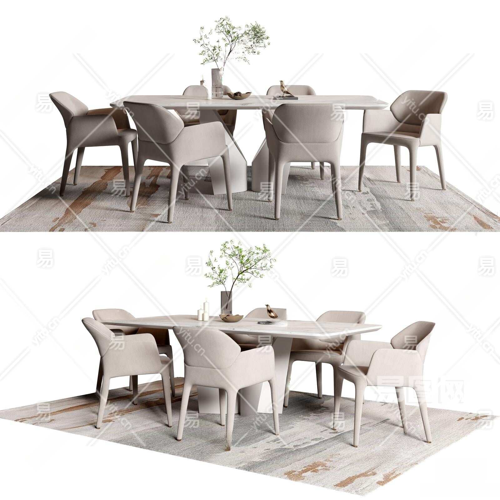 现代餐桌椅组合3D模型下载