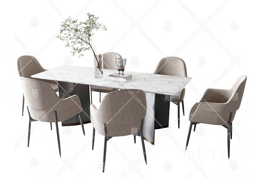 现代餐桌椅组合3D模型下载