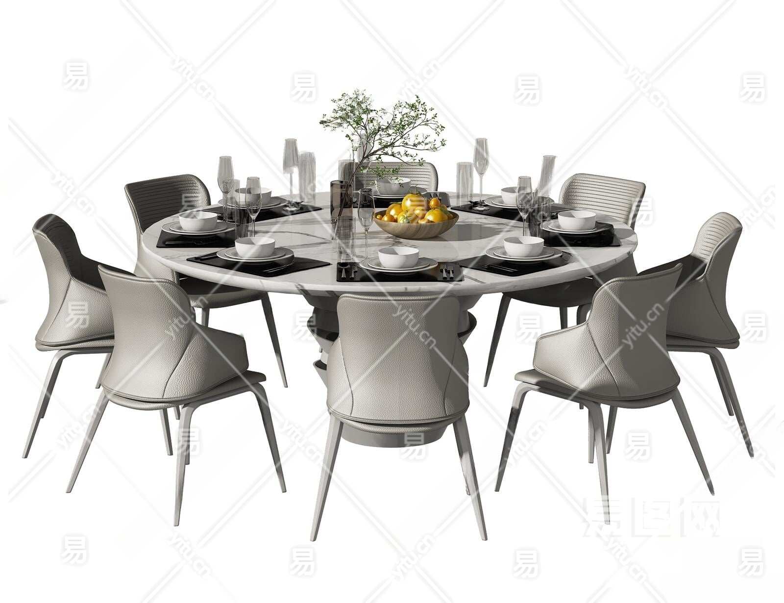 现代餐桌椅组合3D模型下载