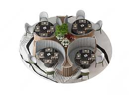 现代餐桌椅组合3D模型下载