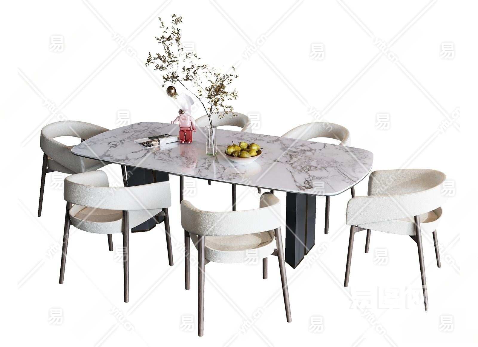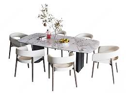 现代餐桌椅组合3D模型下载