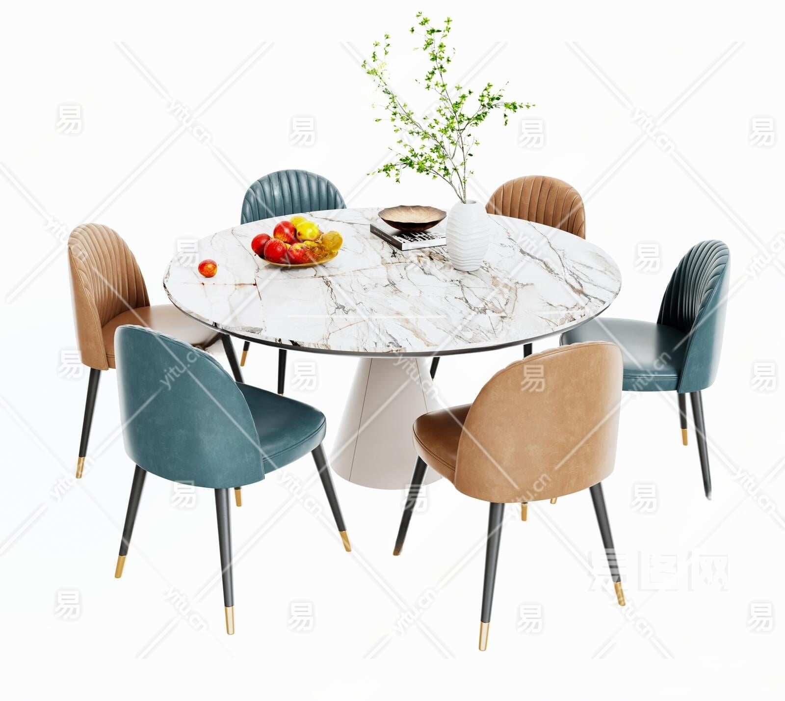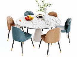现代餐桌椅组合3D模型下载