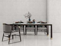 新中式餐桌椅组合3D模型下载