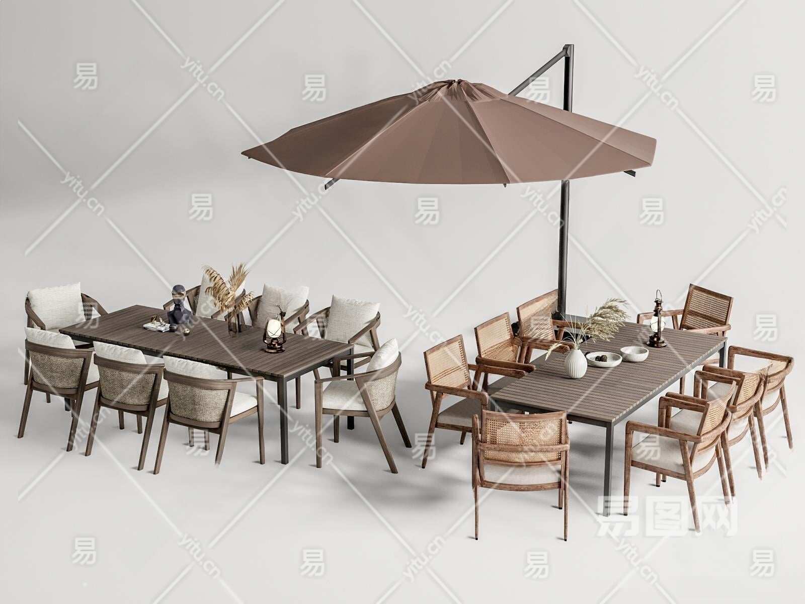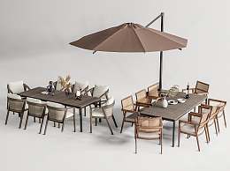 现代户外餐桌椅组合3D模型下载