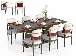 新中式餐桌椅组合3D模型下载