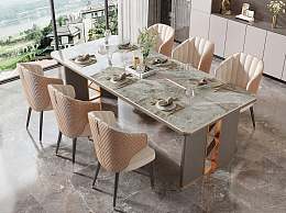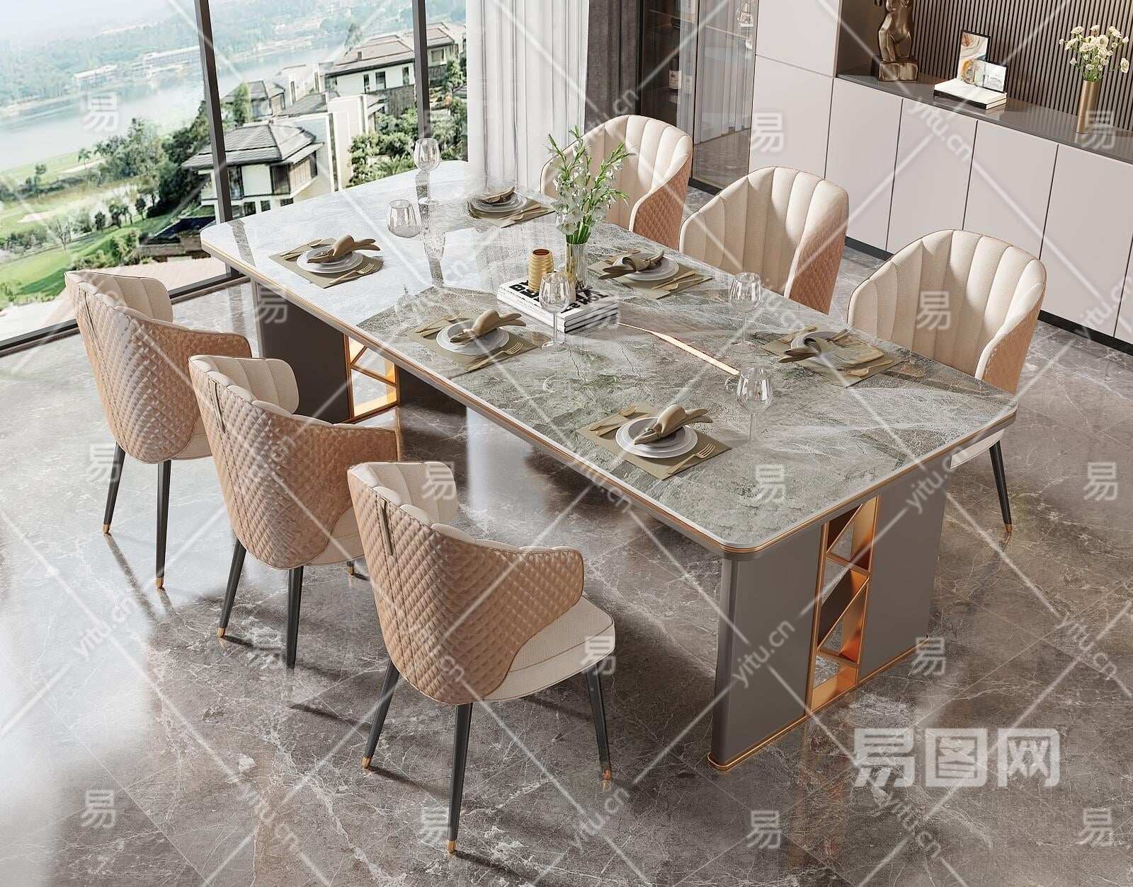 现代轻奢大理石餐桌椅组合3D模型下载