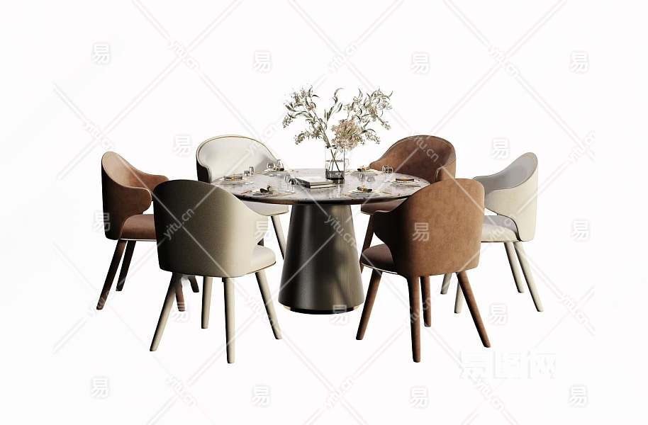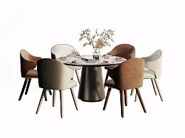 现代圆形餐桌椅3D模型下载