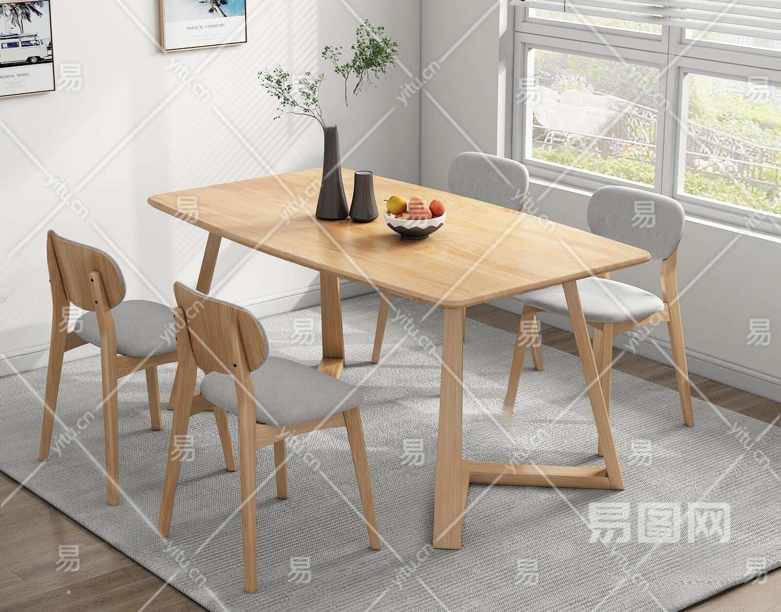 北欧餐桌椅组合3D模型下载