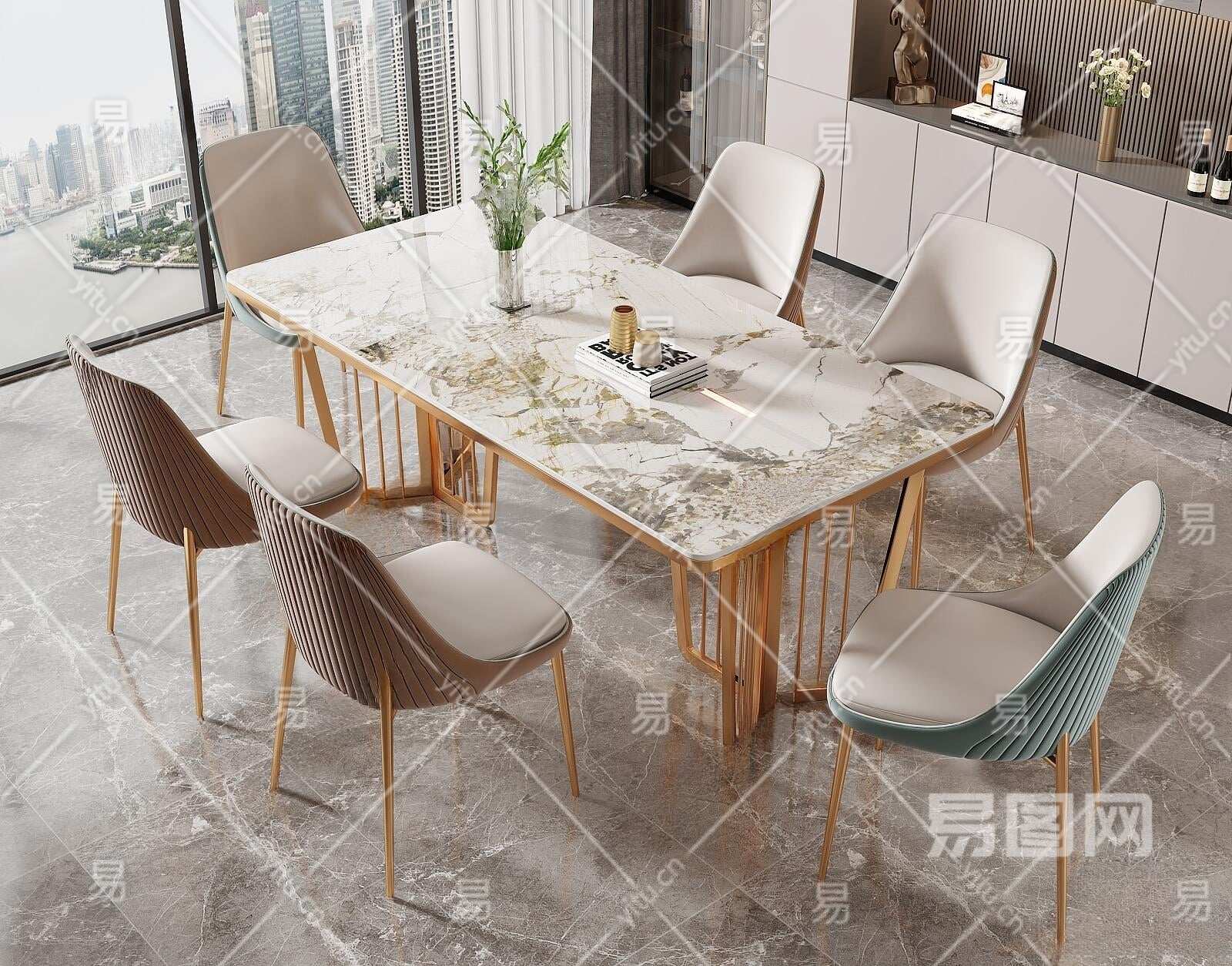 现代大理石餐桌椅组合3D模型下载