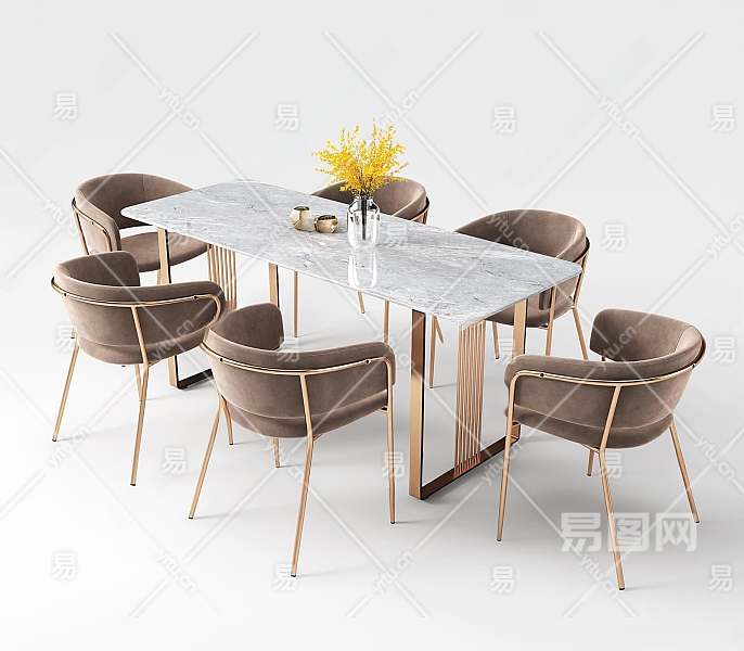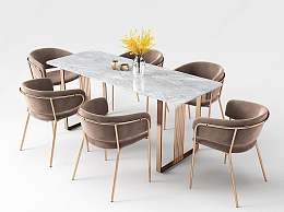 现代轻奢餐桌椅组合3D模型下载