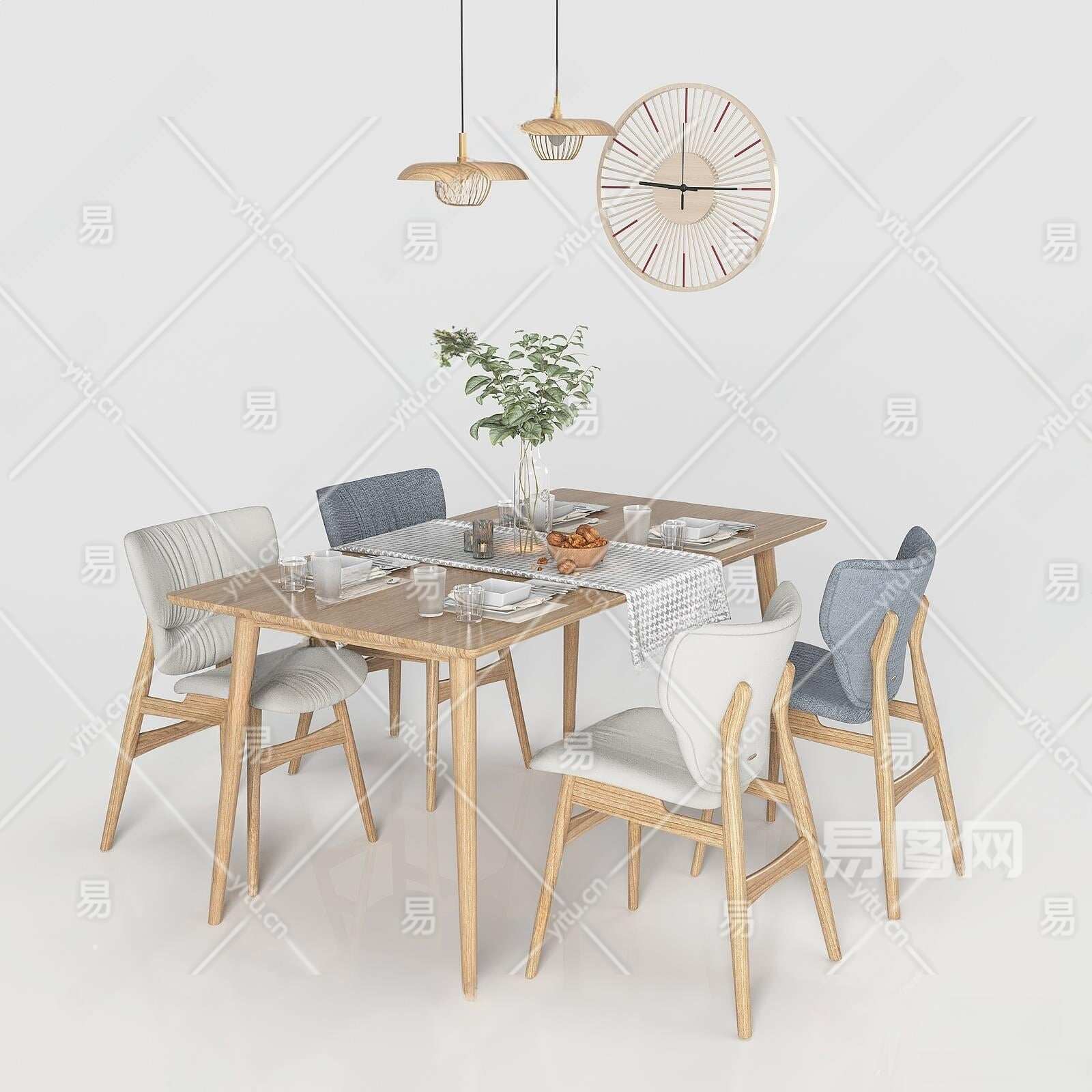 北欧餐桌椅组合3D模型下载