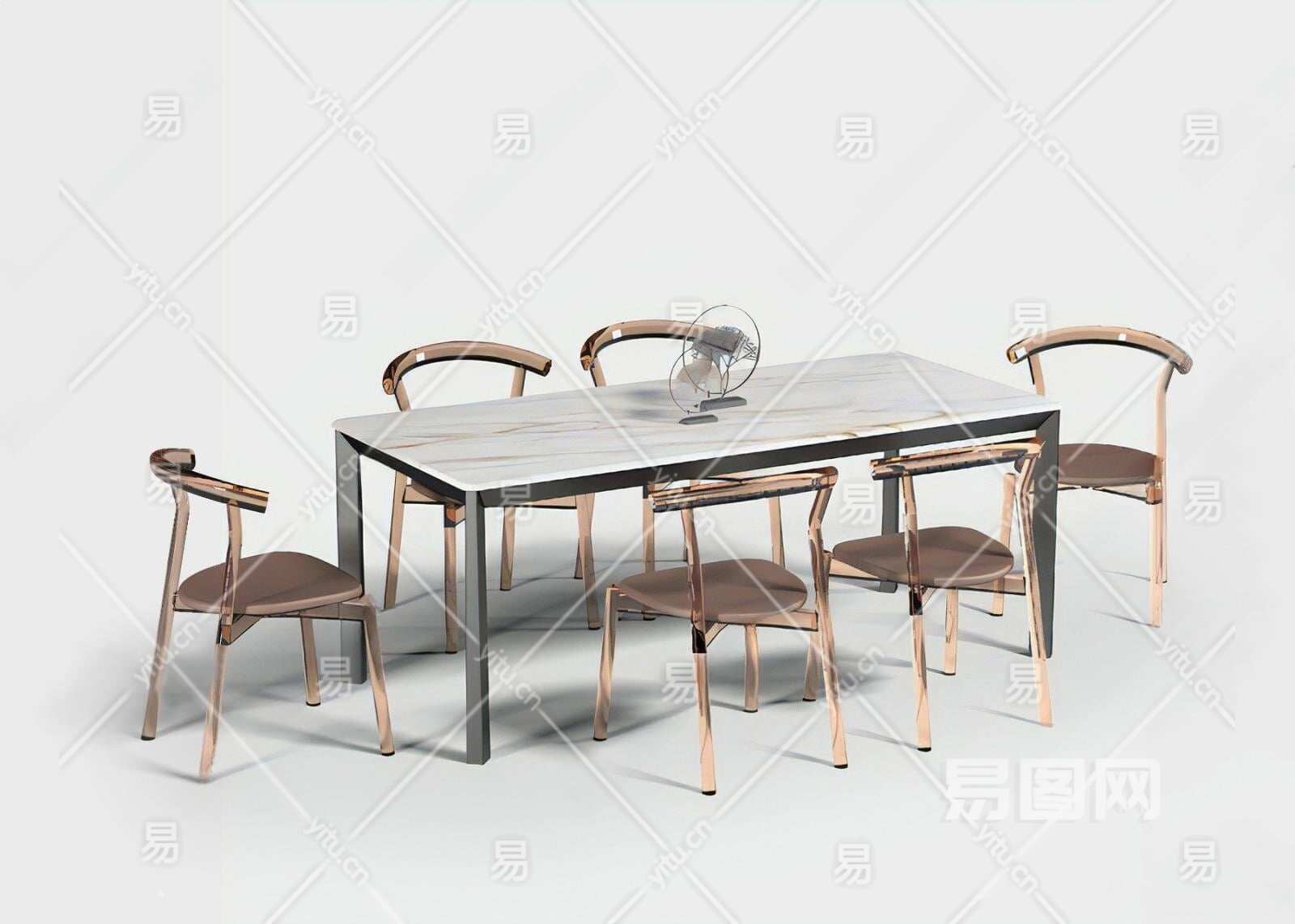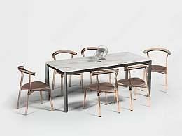 现代大理石条形餐桌椅3D模型下载