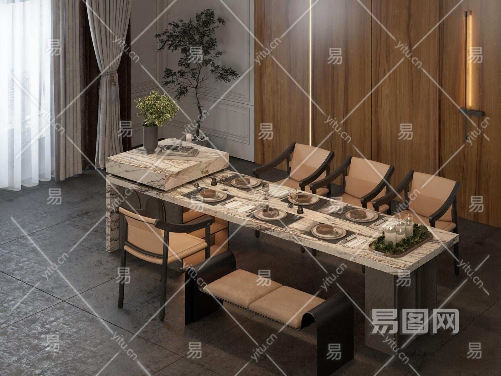 当前的位置:首页 > 3D模型 > 桌椅组合 > 餐桌椅组合 > 现代中岛台餐桌椅组合3D模型下载