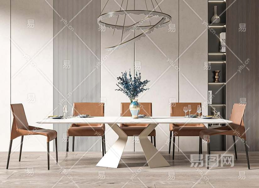 现代餐桌椅组合3D模型下载