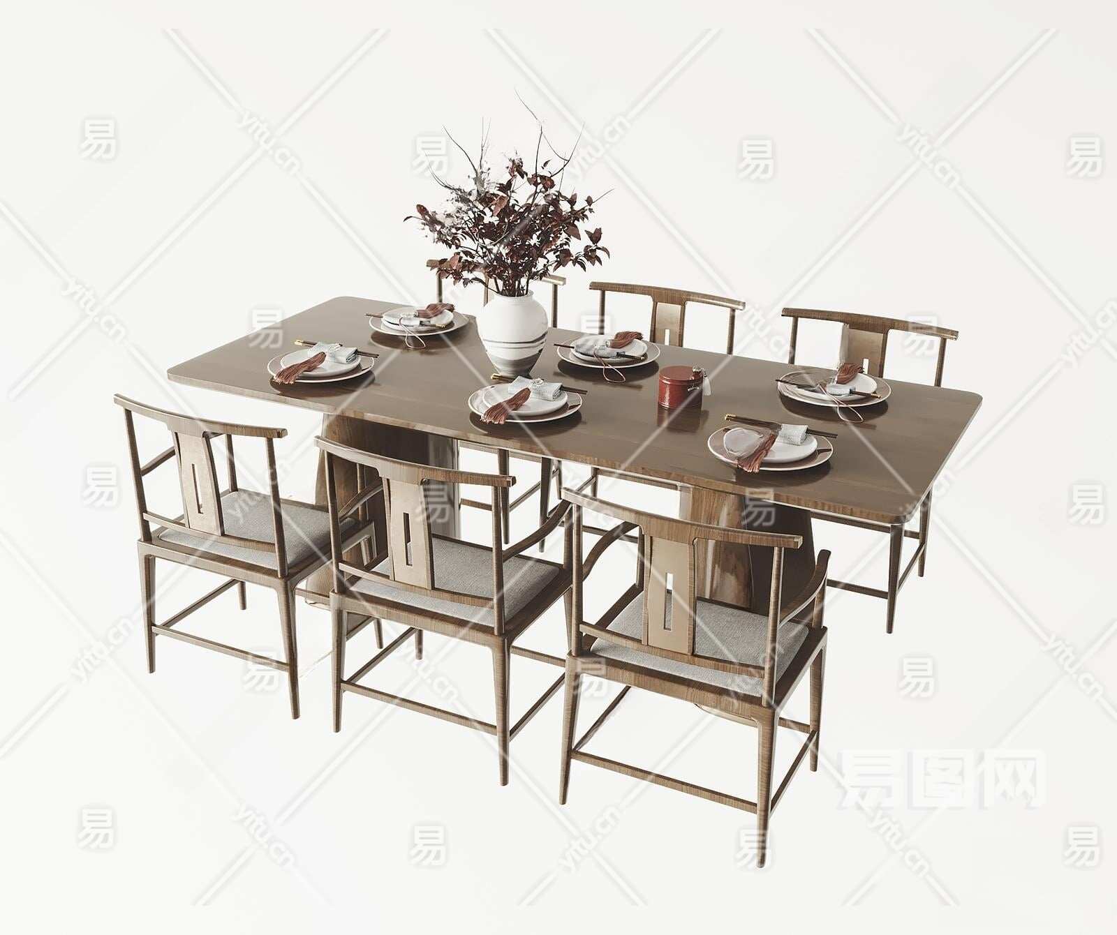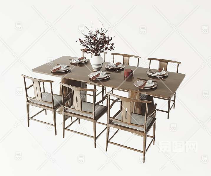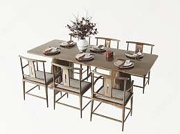 新中式餐桌椅组合3D模型下载