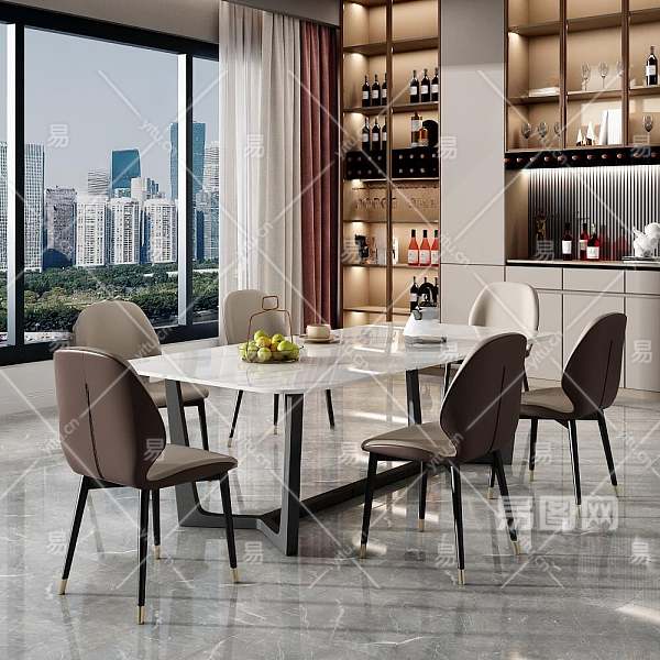 现代餐桌椅组合3D模型下载