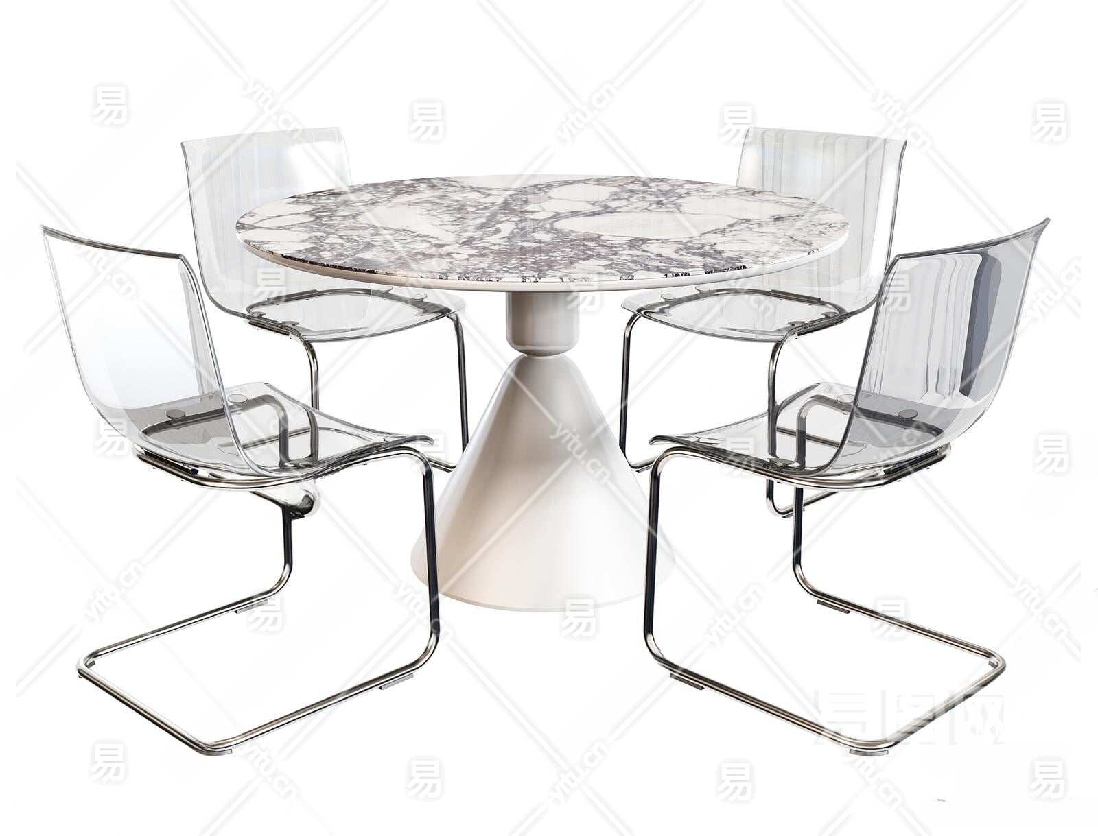 现代餐桌椅组合3D模型下载
