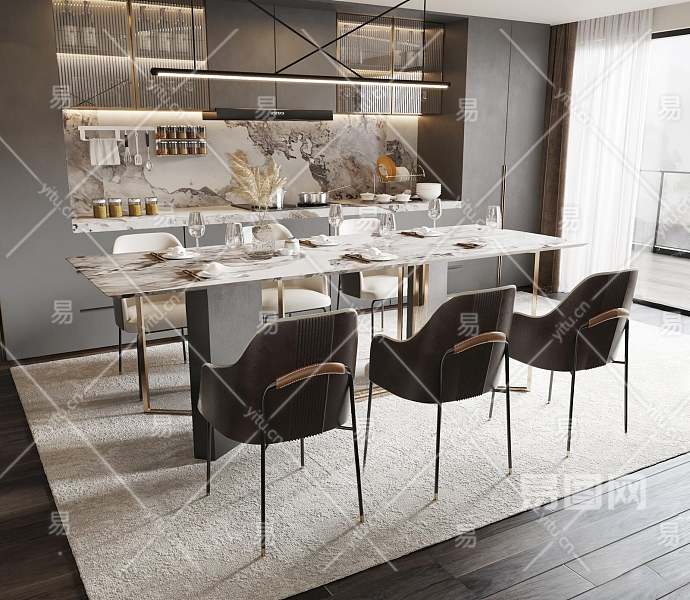 现代餐桌椅组合3D模型下载