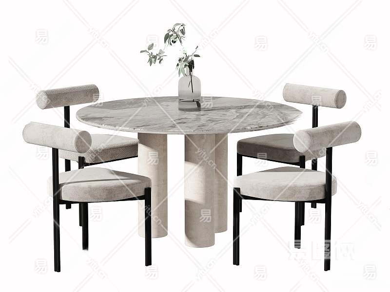 侘寂圆形餐桌椅组合3D模型下载