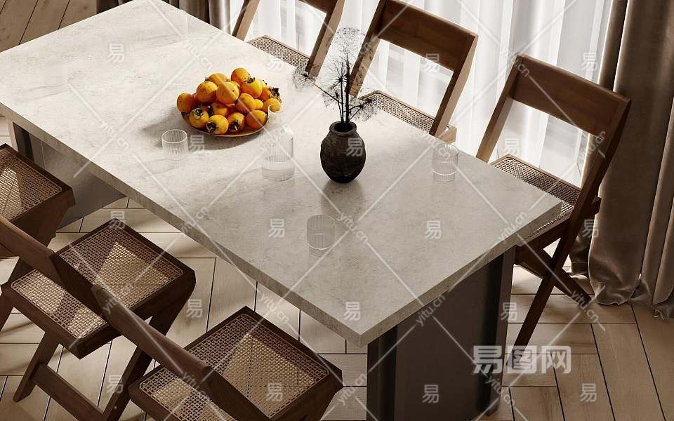 侘寂餐桌椅组合3D模型下载